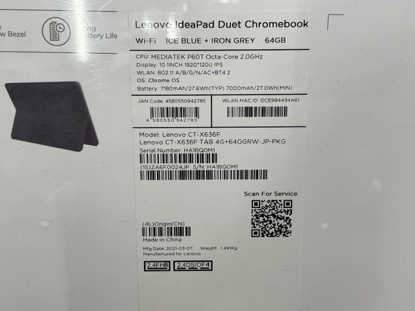 OS:Chrome OS、CPU:MediaTek Helio P60T プロセッサー、2.0GHz