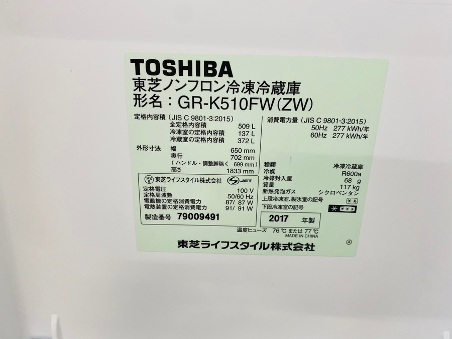 大容量509L!TOSHIBA(東芝)の6ドア冷蔵庫のご紹介です!