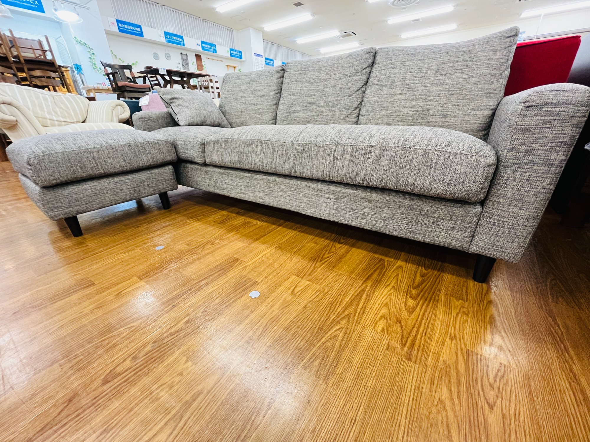 目立つ汚れやキズもなく、オットマン使用することでカウチソファーのように使用することができます!