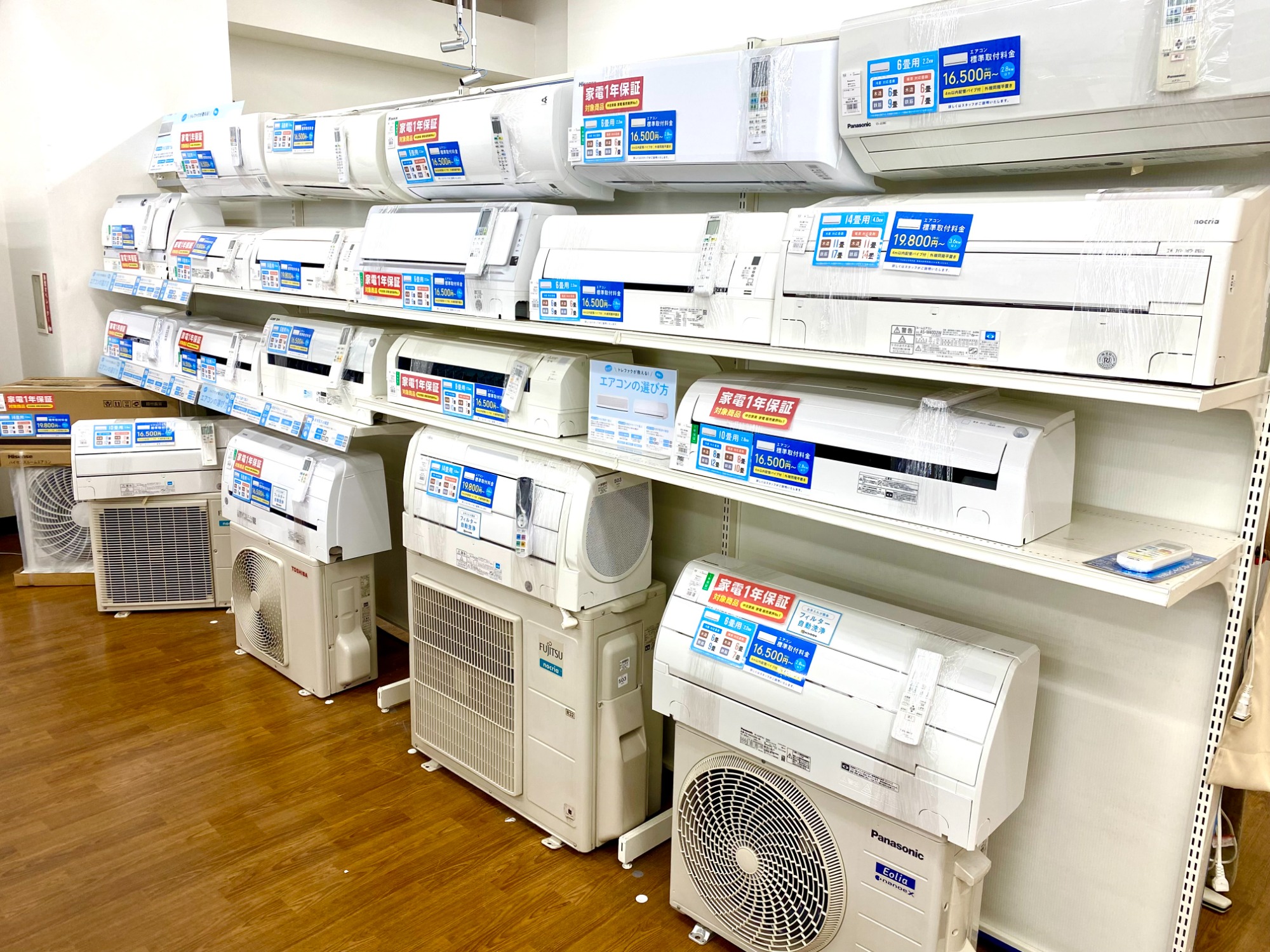 エアコンは取り付けのお申込みまで承っております!在庫が充実している今こそお買い時のチャンス!