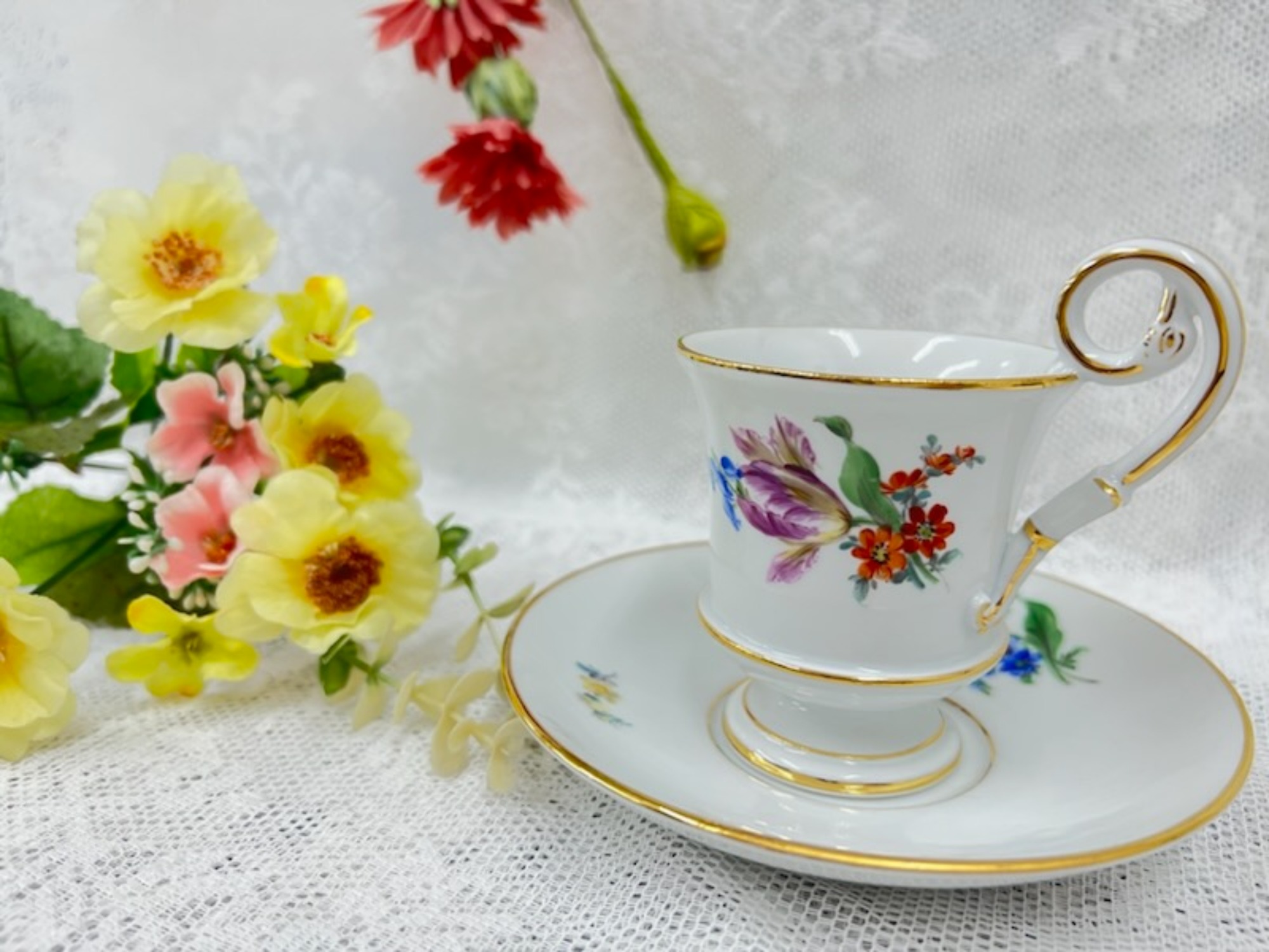 MEISSEN(マイセン)の『ベーシックフラワー・スワンハンドル』アンティークカップ&ソーサー入荷いたしました‼
