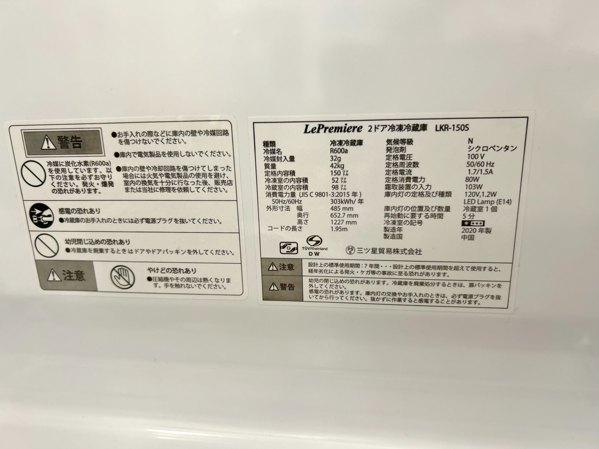 【容量】150L