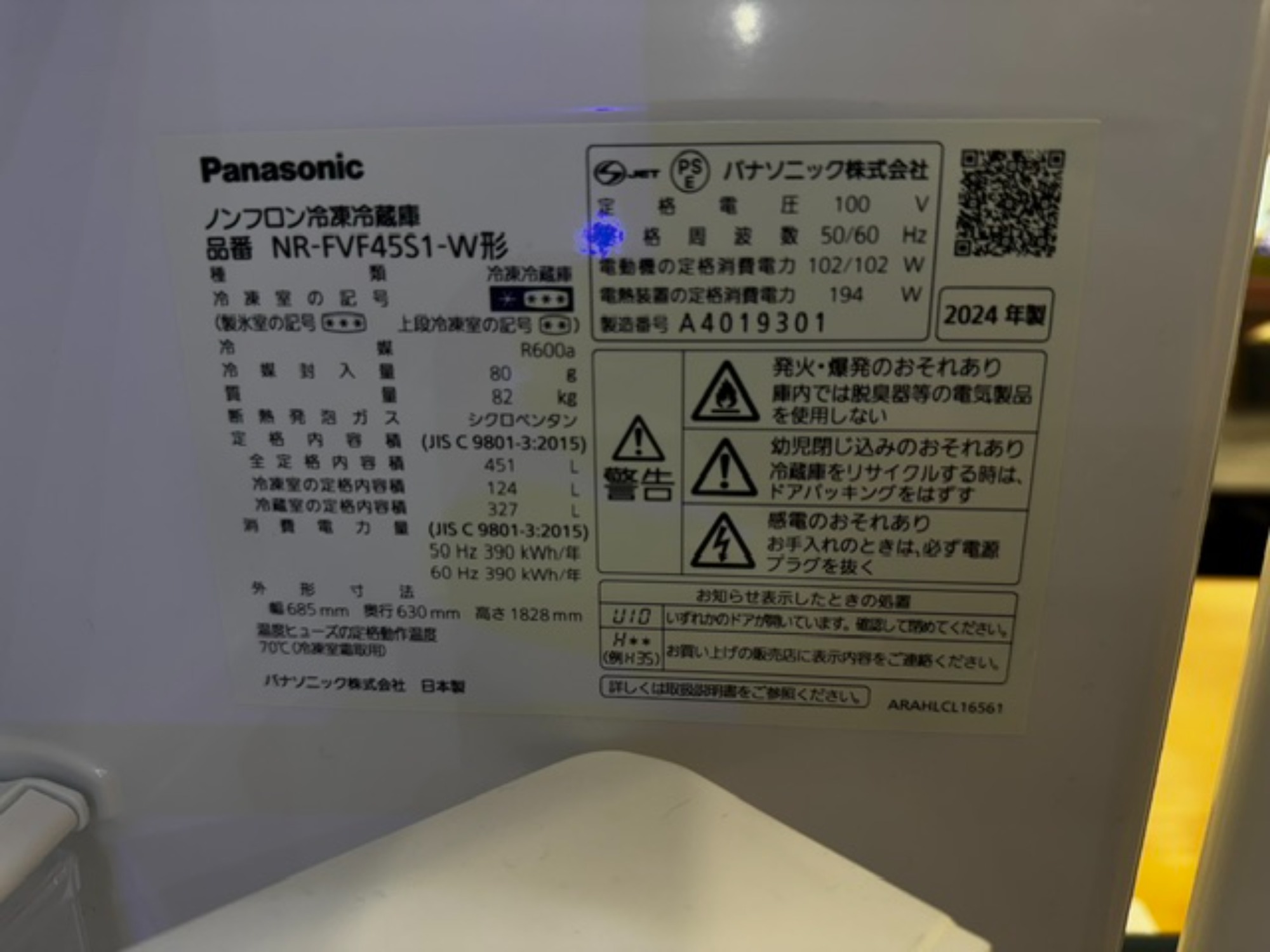 2024年製 6ドア冷蔵庫(NR-FVF45S1-W)が入荷しました!