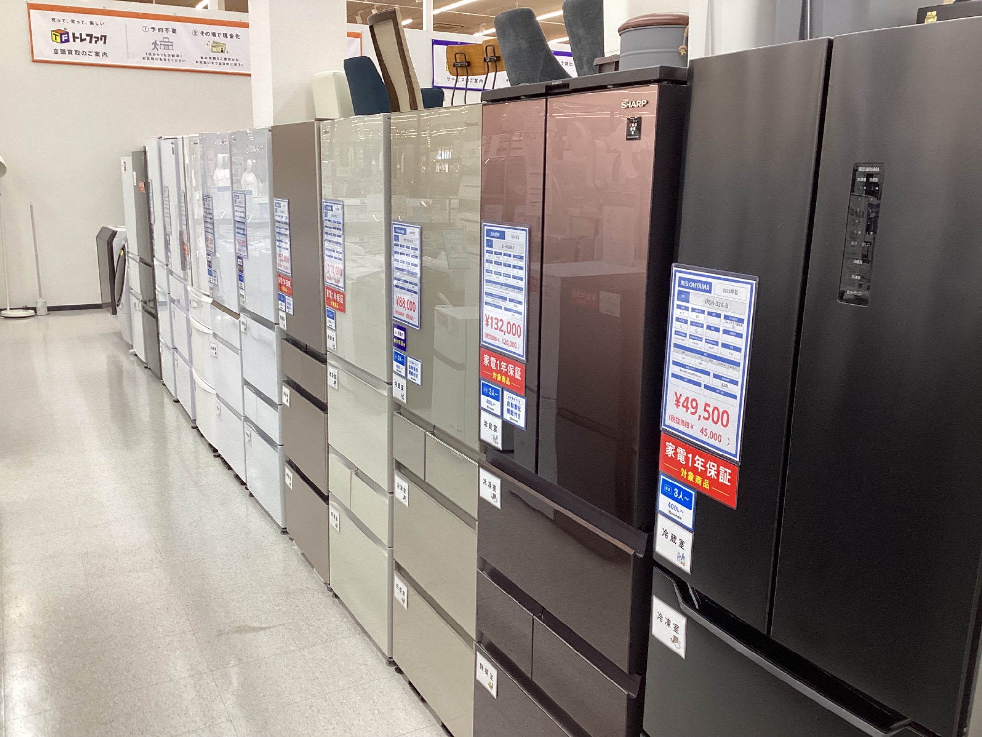 冷蔵庫、洗濯機展示台数50台以上!