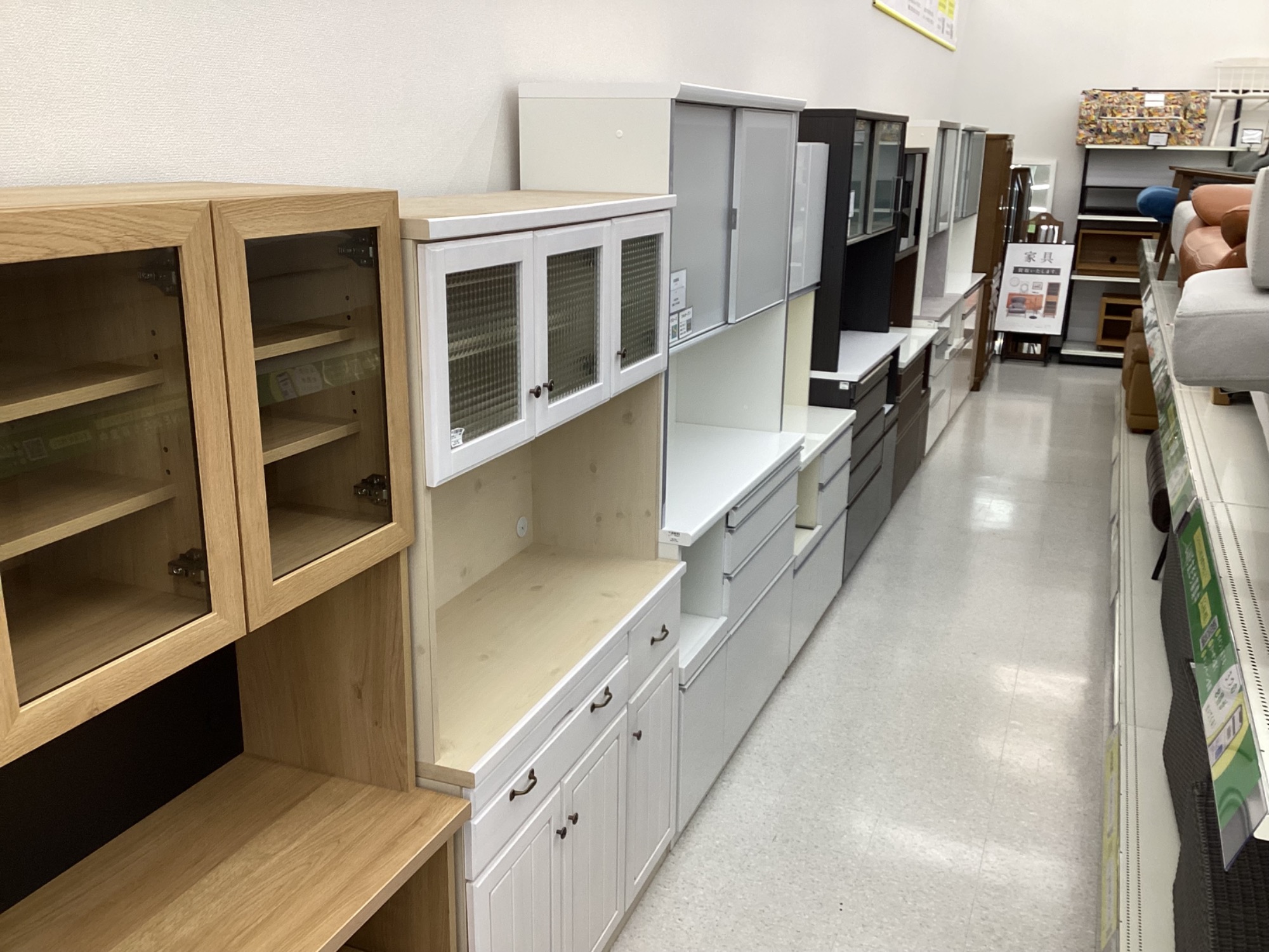 カップボードやソファーも大量展示中!ベッドもお取り扱いしています!