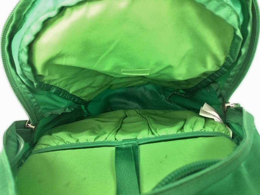 背中の反射板、背面には型崩れしないようプラスチック板も装備と、
