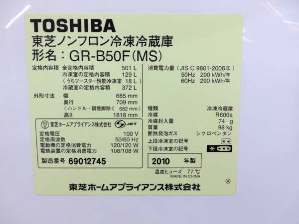 全内容積・・・501L(冷蔵容積372L/冷凍容積129L)
