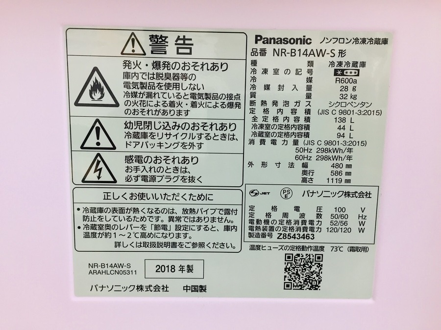 型番:NR-B14AW-S