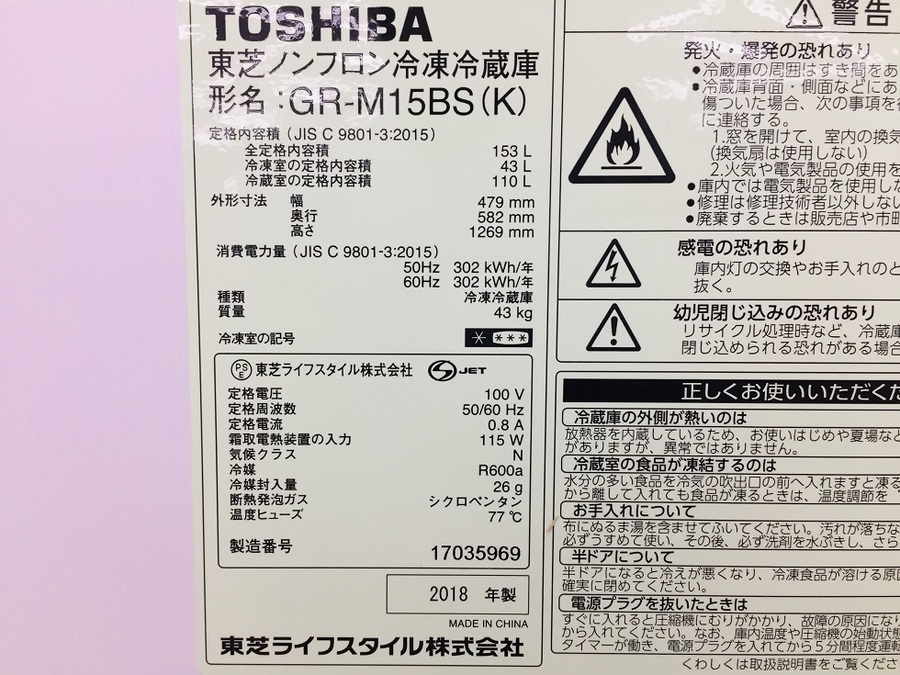 本日はTOSHIBA(トウシバ)2ドア冷蔵庫