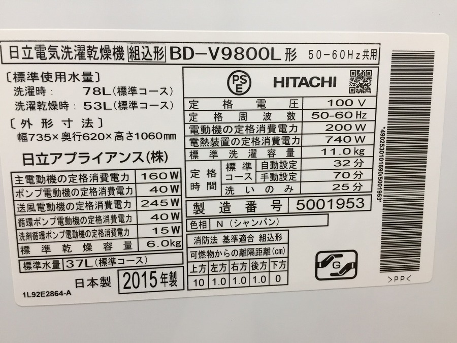 HITACHI(日立) ドラム式洗濯機