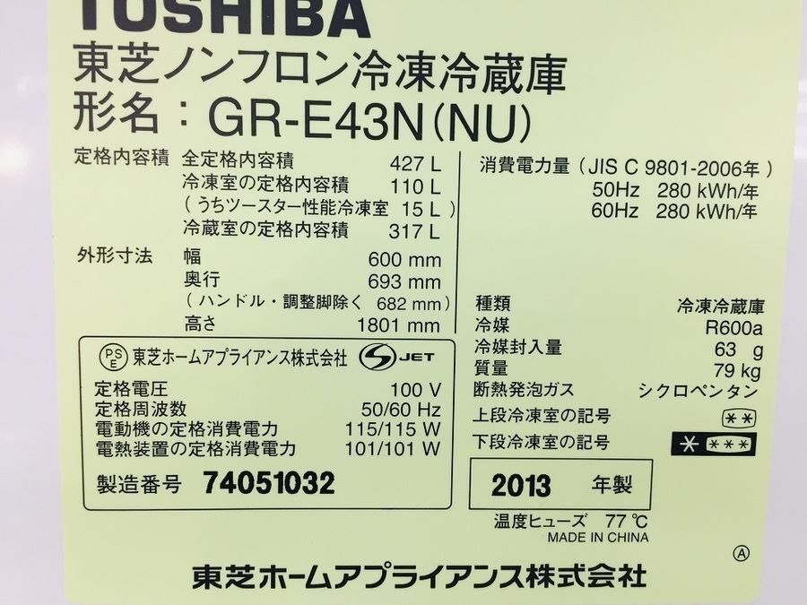 本日はTOSHIBA(東芝) 5ドア冷蔵庫