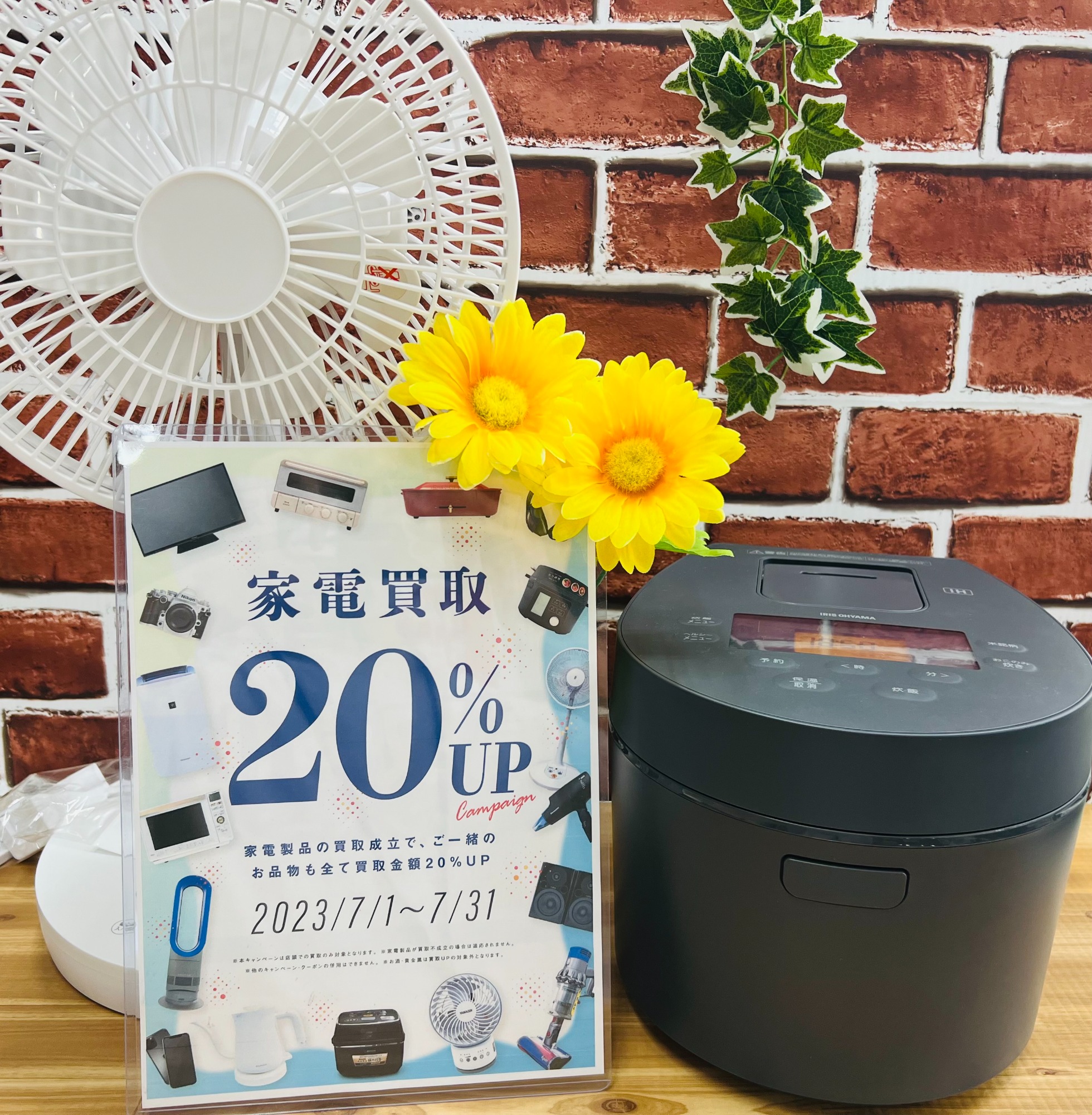 7月は家電買取20%UPキャンペーン!扇風機や炊飯器など、ぜひお持ち込みください!