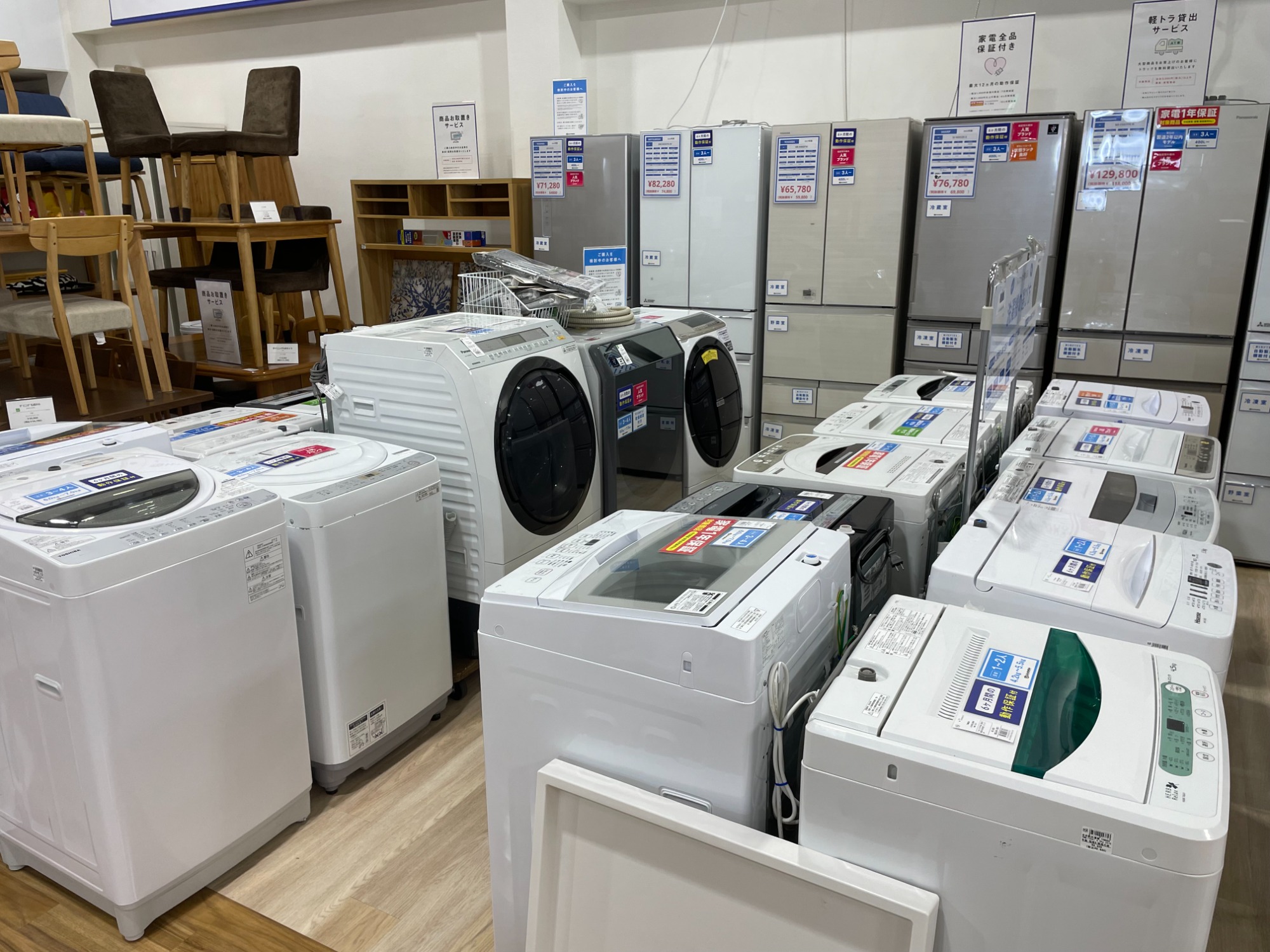 有料での配送サービスや1時間までの軽トラック貸出サービスもご用意しておりますので、スタッフまでお気軽にご相談ください!
