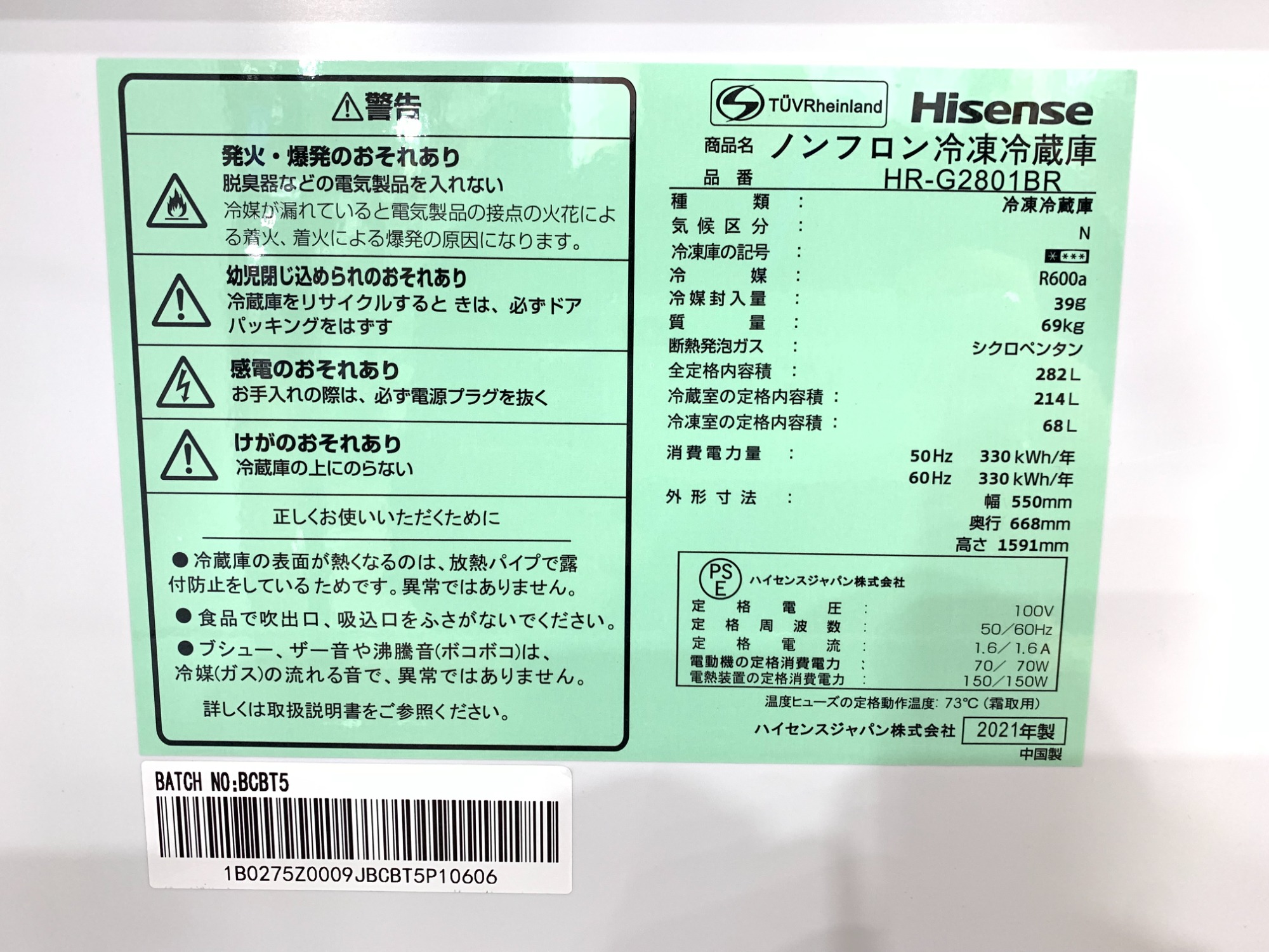 Hisense/ハイセンス 3ドア冷蔵庫 HR-G2801BR 2021年製 ご紹介いたします!