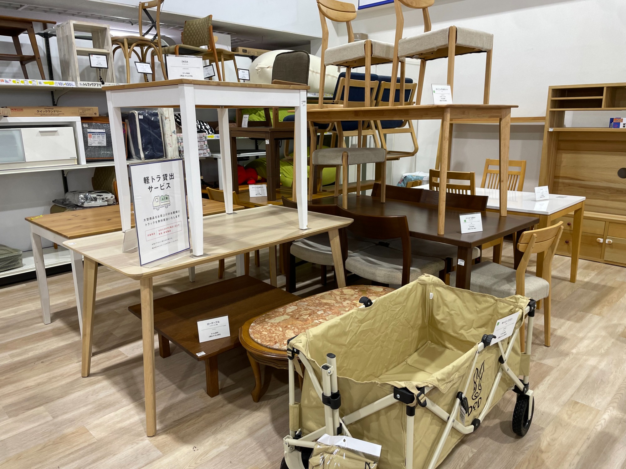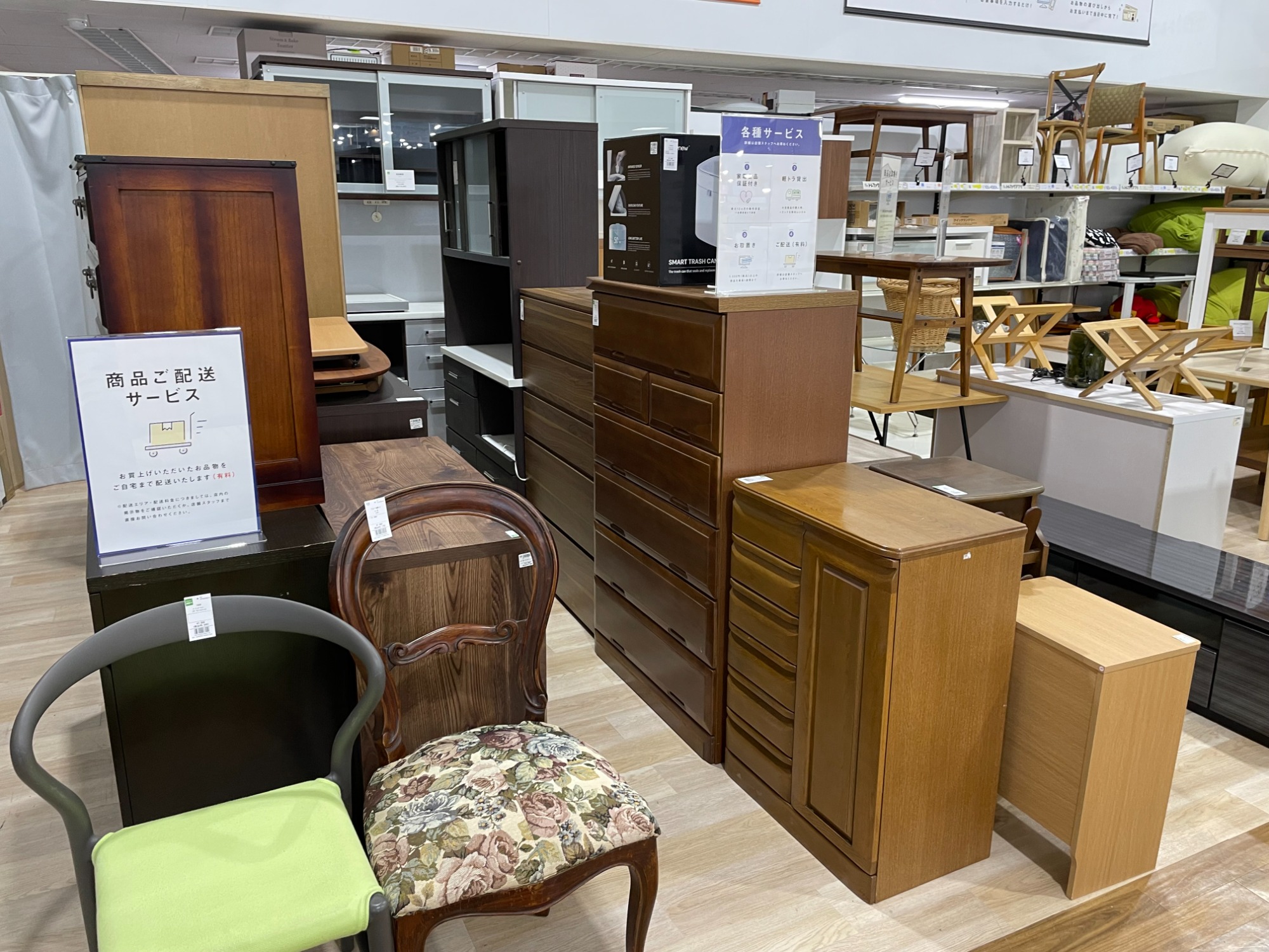 有料での配送サービスや1時間までの軽トラック無料貸し出しサービスもご用意しておりますので、お気軽にご相談ください!