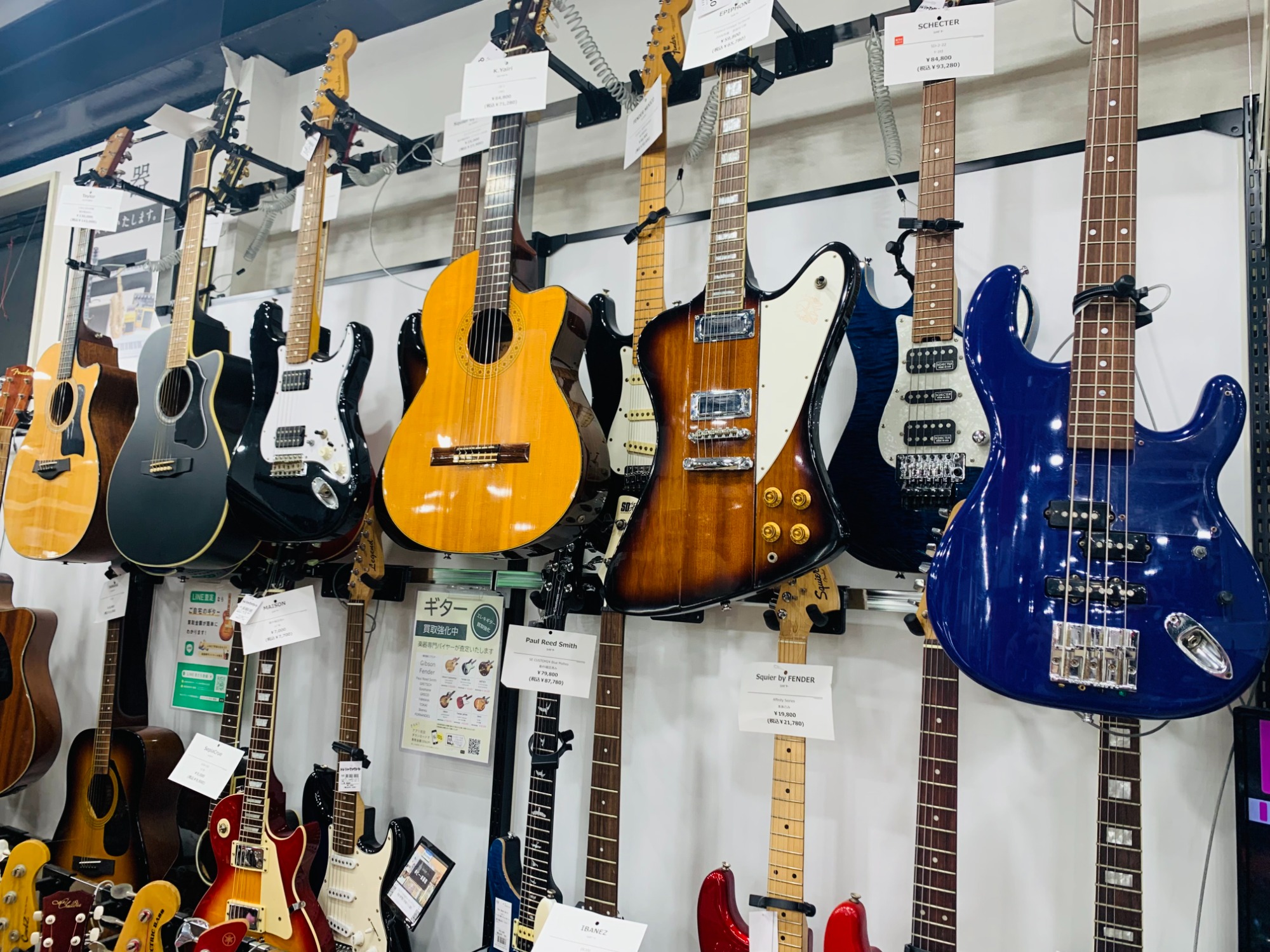 当店ではエレキギターはもちろん、アコギ、キーボード、トイピアノなど数多くの楽器を