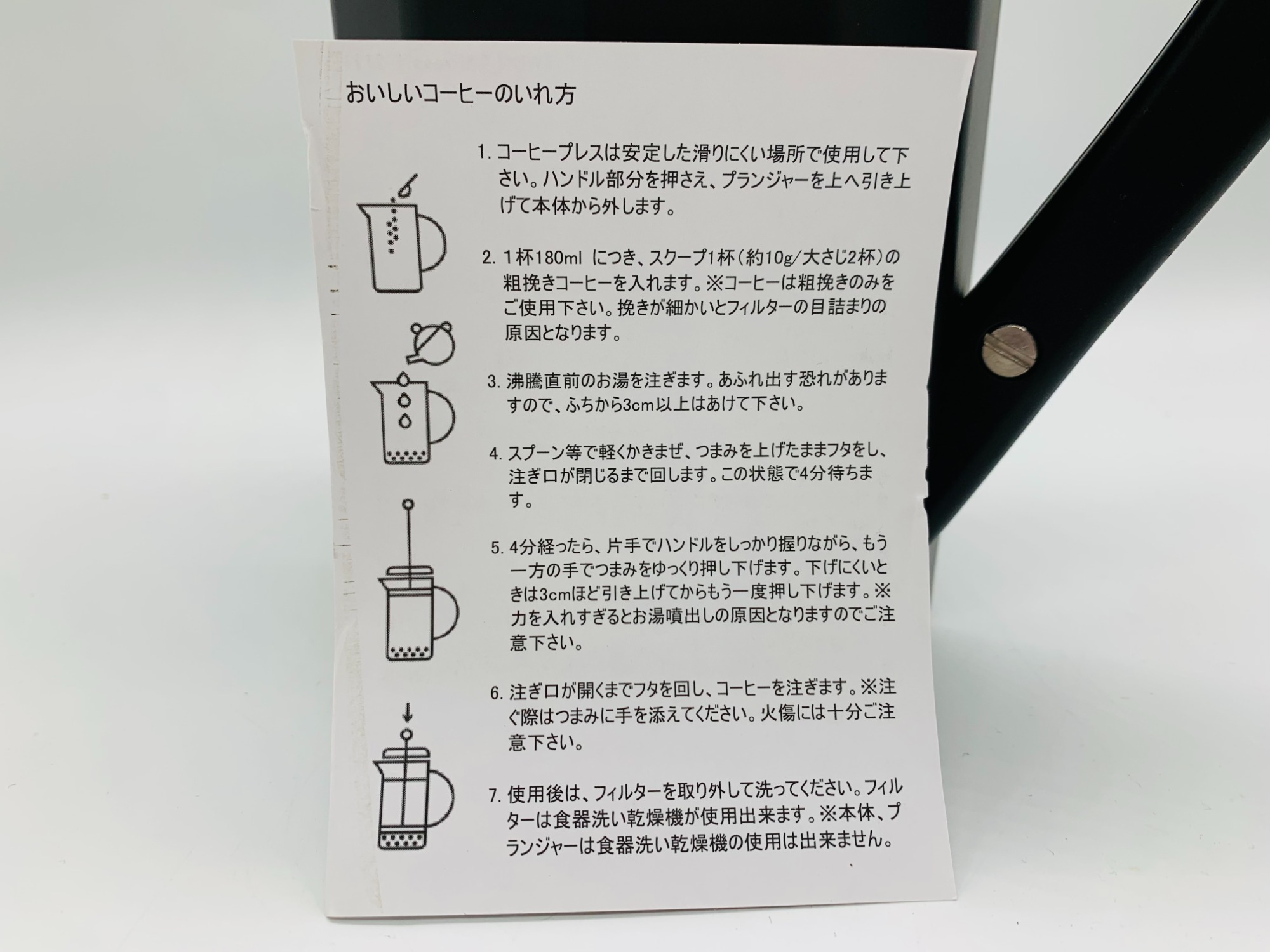 初めてコーヒープレスを使用する方でも説明書付きなので分かりやすく使用できます。