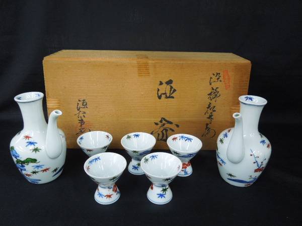 一枚目が、酒器セット(染錦松竹梅 徳利×2、お猪口×5)