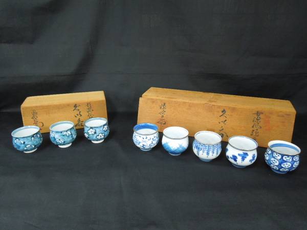 二枚目向かって左側が、ぐい呑み3個セット(古染風松竹梅)