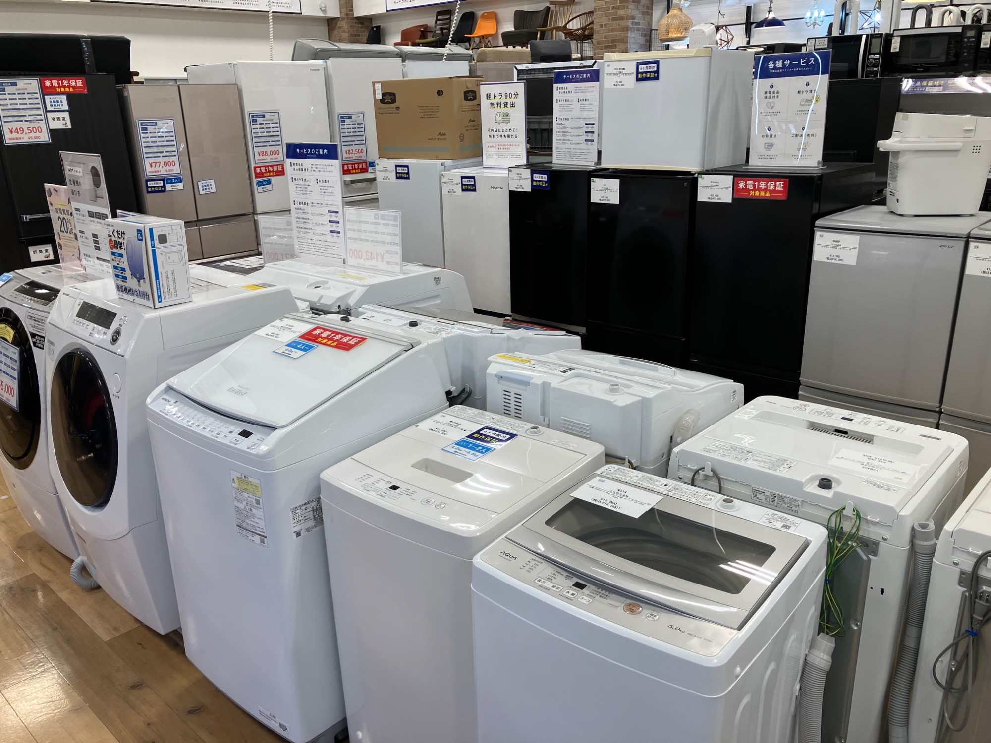 冷蔵庫、洗濯機展示台数50台以上!