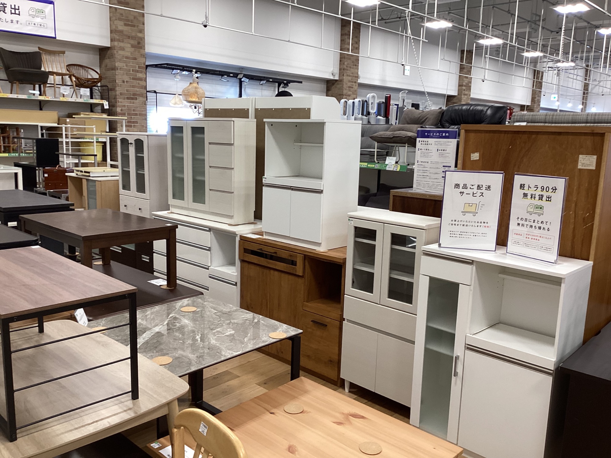 カップボードやソファーも大量展示中!ベッドもお取り扱いしています!
