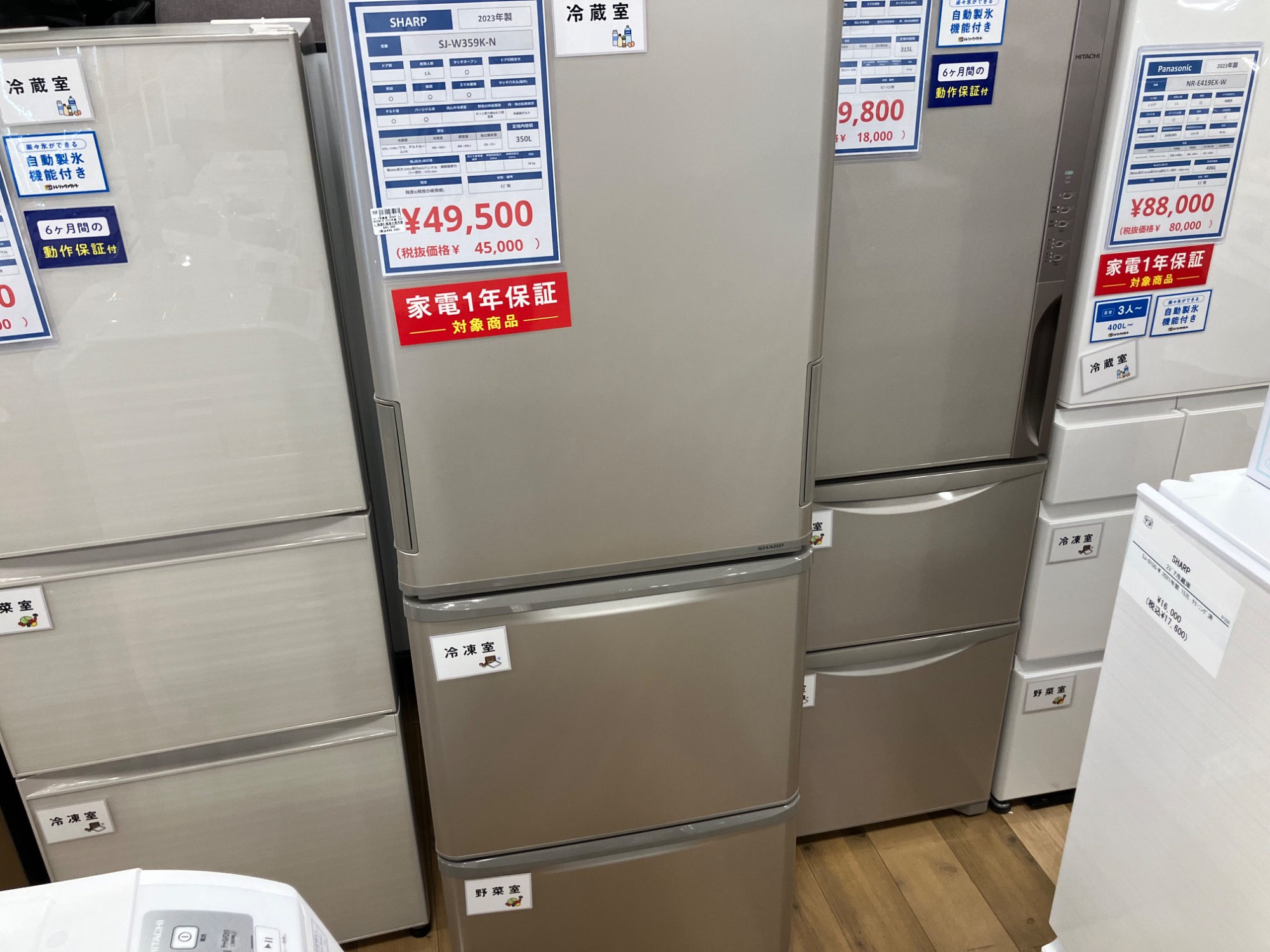 冷蔵庫、洗濯機展示台数50台以上!