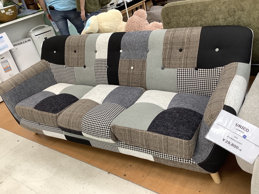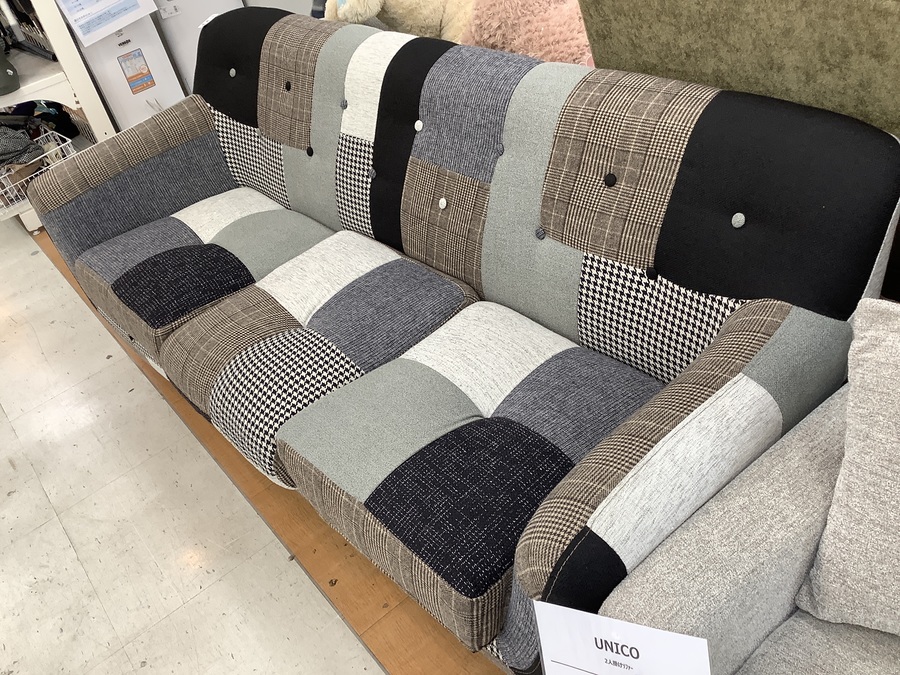 ノーブランドではありますが、可愛らしいパッチワーク柄とモノトーンのカラーがとてもオシャレなソファです。