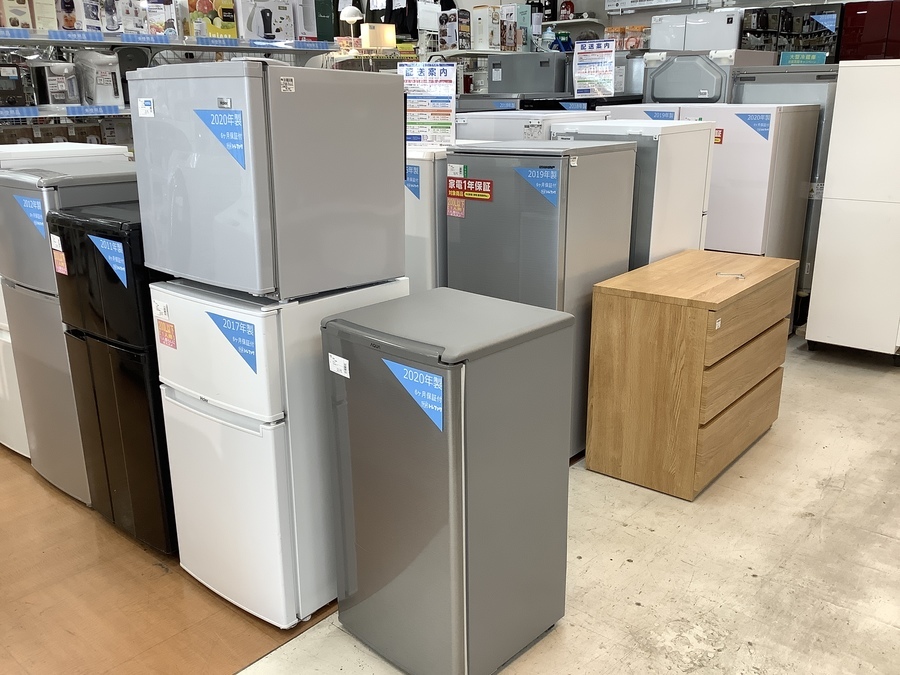 当店ではファミリー向けの大型冷蔵庫から単身者向けの冷蔵庫まで扱っていますのでお客様の欲しいがきっと見つかります♪