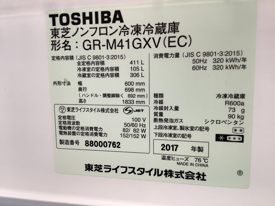 TOSHIBA(トウシバ)の5ドア冷蔵庫【GR-M41GXV】が買取入荷しました!【立川日野橋店】