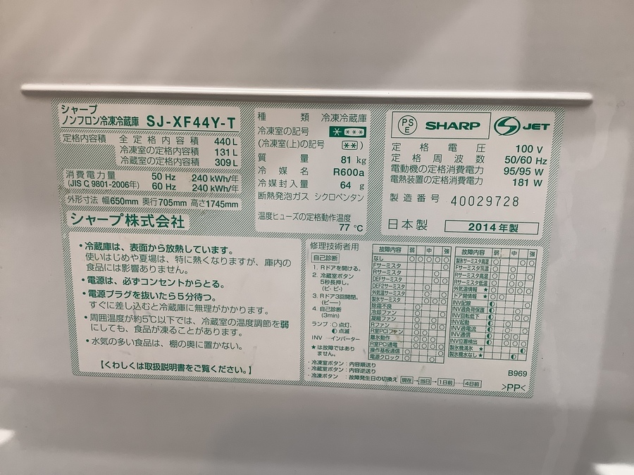 SHARP(シャープ)の6ドア冷蔵庫【SJ-XF44Y-T】を買取入荷しました!!【立川日野橋店】