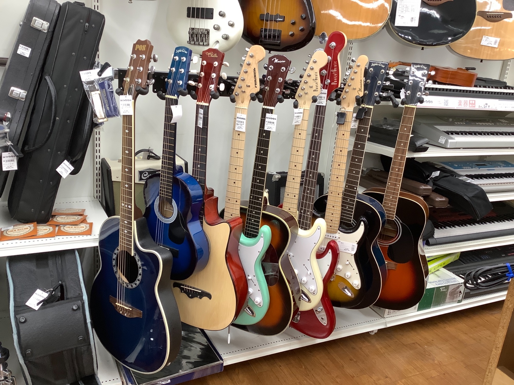 エレキギターの他にもアコースティックギターやウクレレ、ベース、電子ピアノなどなど豊富に取り揃えています♪