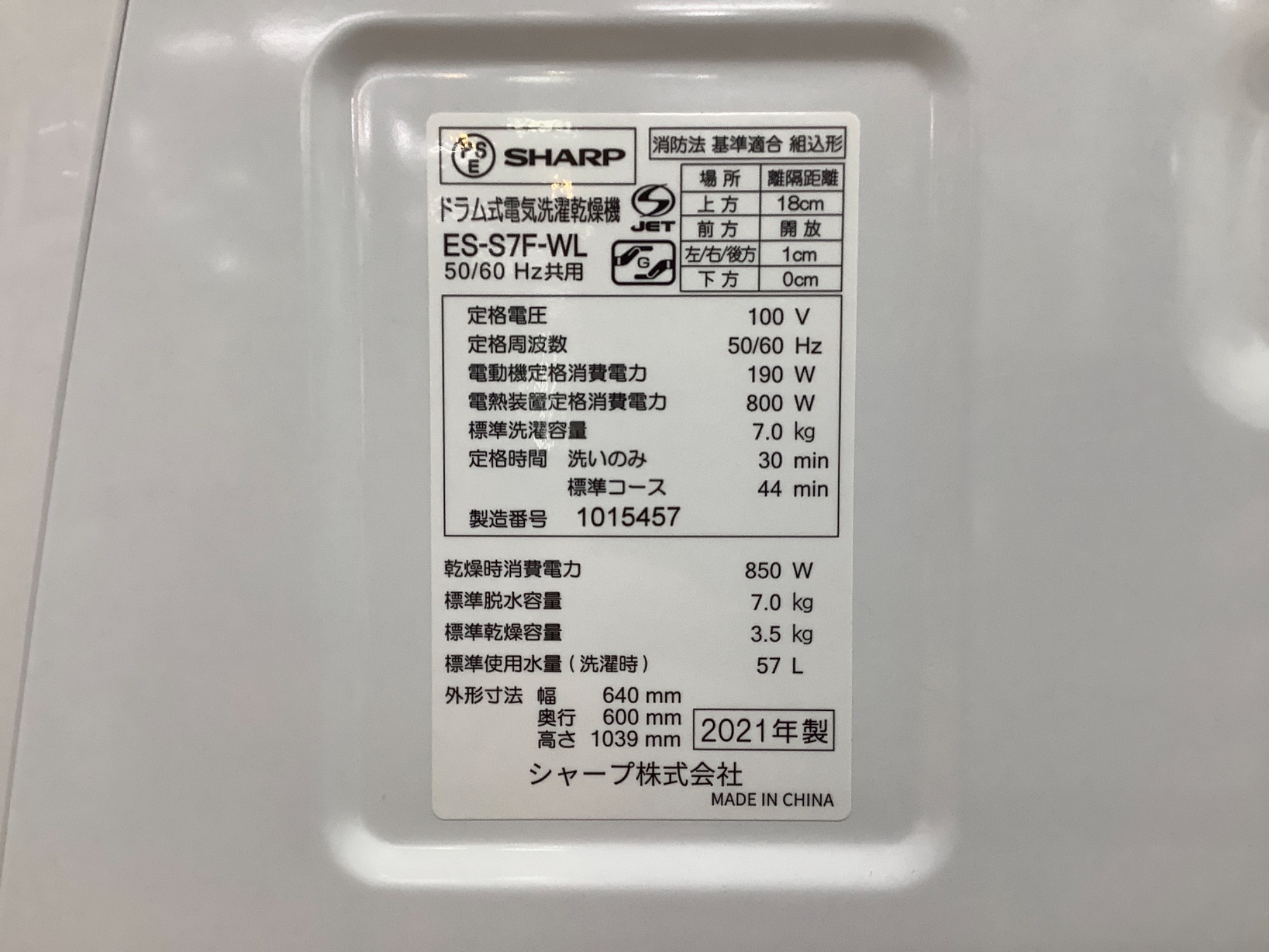 ●型番 :ES-S7F-WL