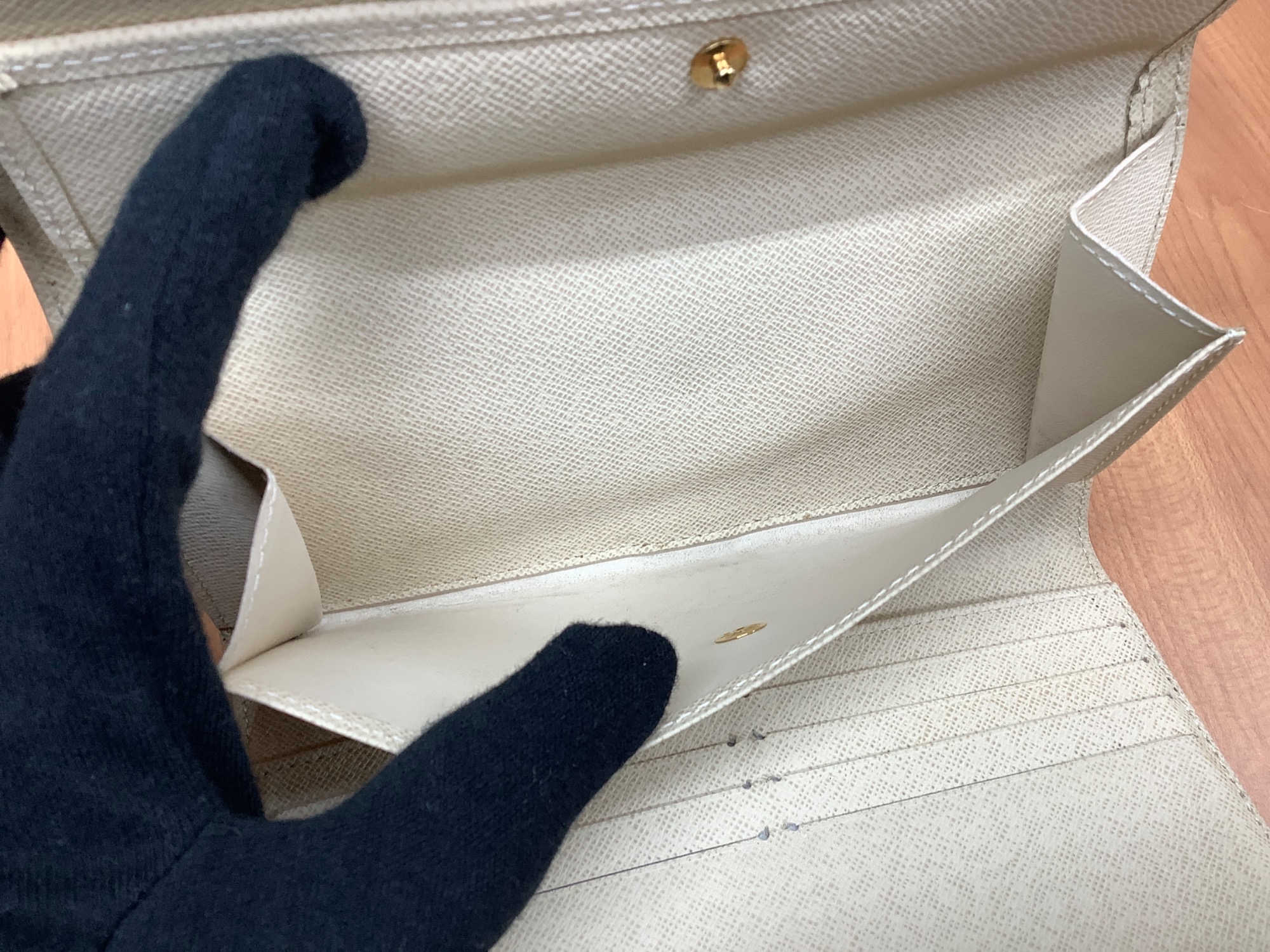 コチラは、LOUIS VUITTON(ルイヴィトン)定番デザインのダミエの3つ折り財布!