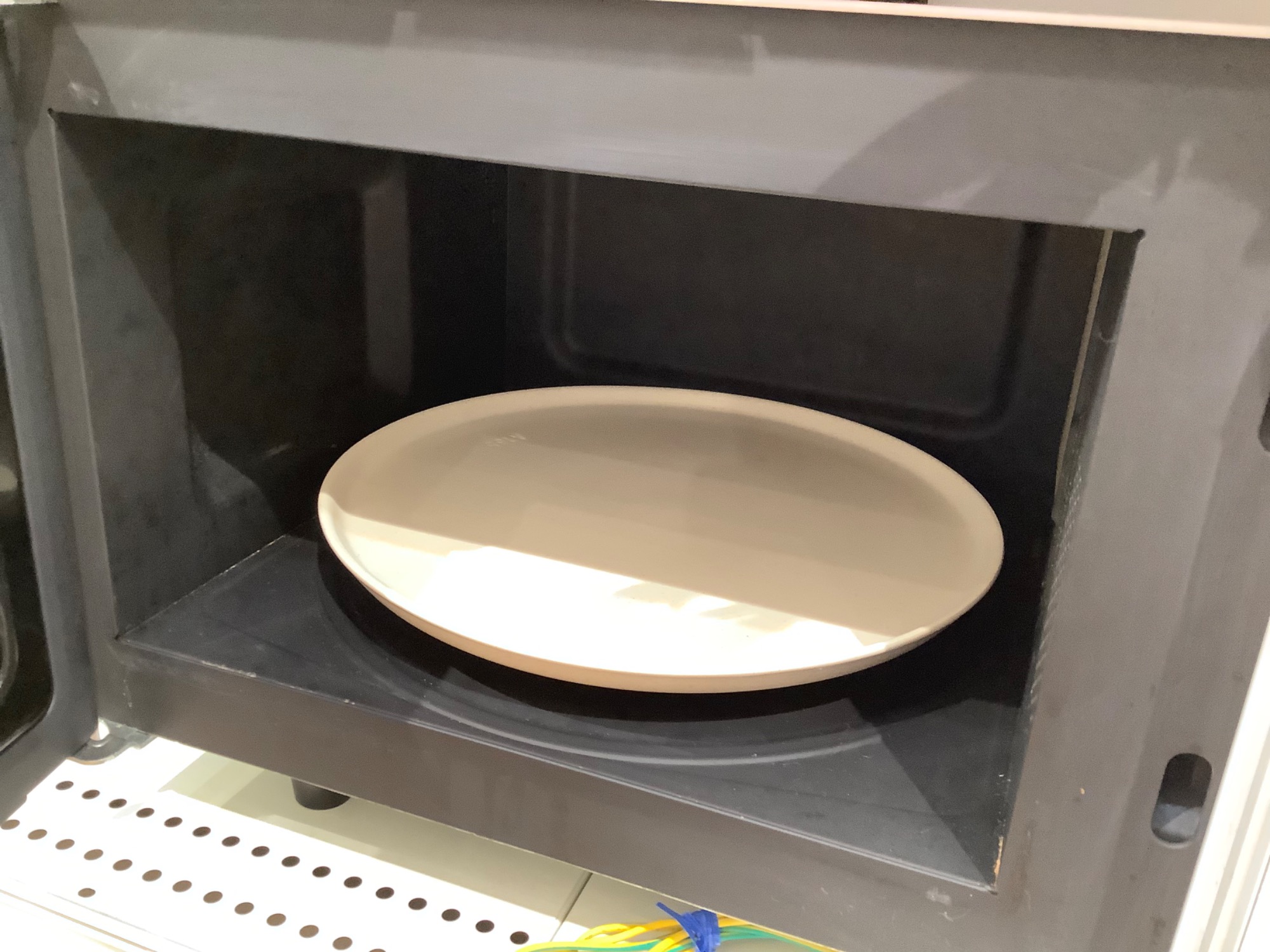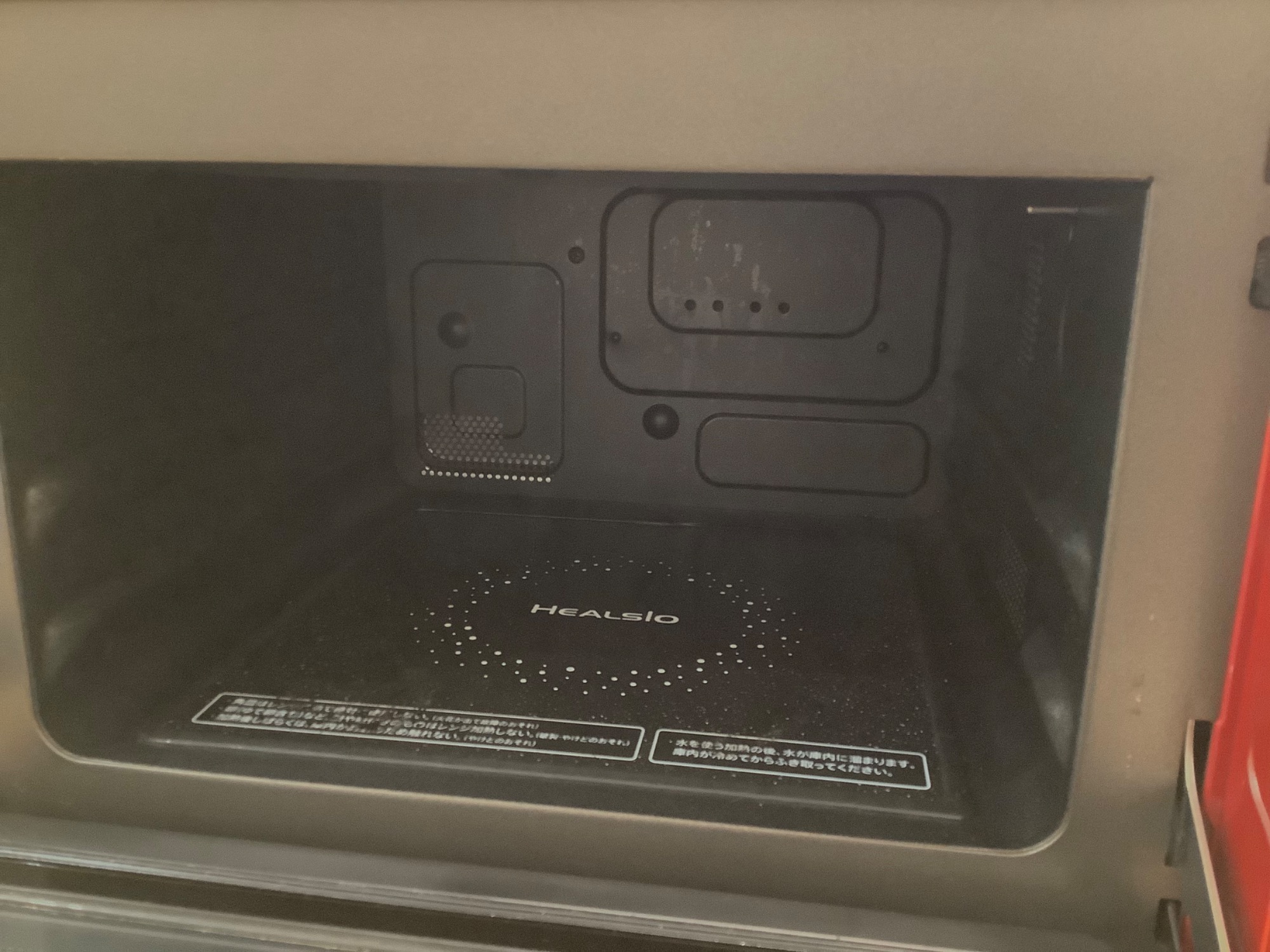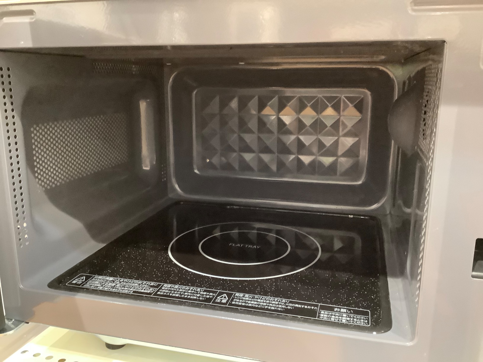 こちらは横開きのタイプ、回転式のオーブンレンジです。