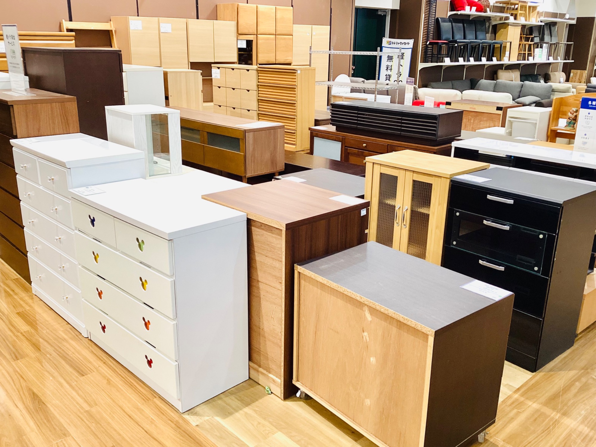 当店ではベッドの他にも、ソファやテーブル、本棚やチェストといった家具アイテムを多数お取り扱いしております!