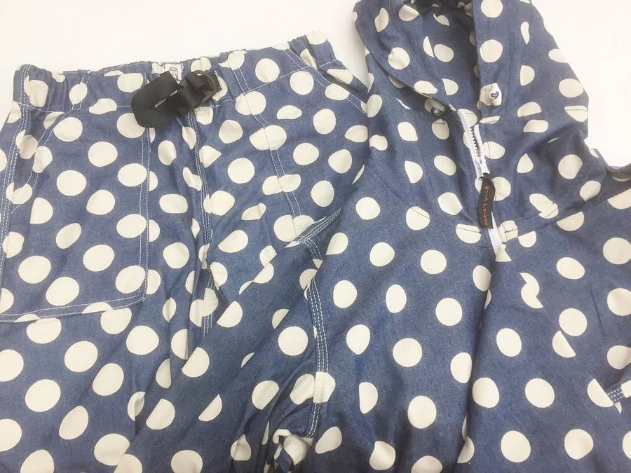 続いてはドット柄が目を引くジップパーカー&クライミングパンツです
