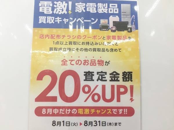 8月限定!家電買取キャンペーン!!【北越谷店】