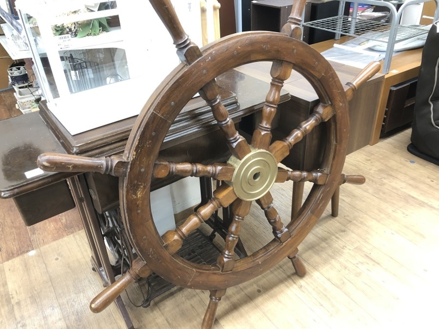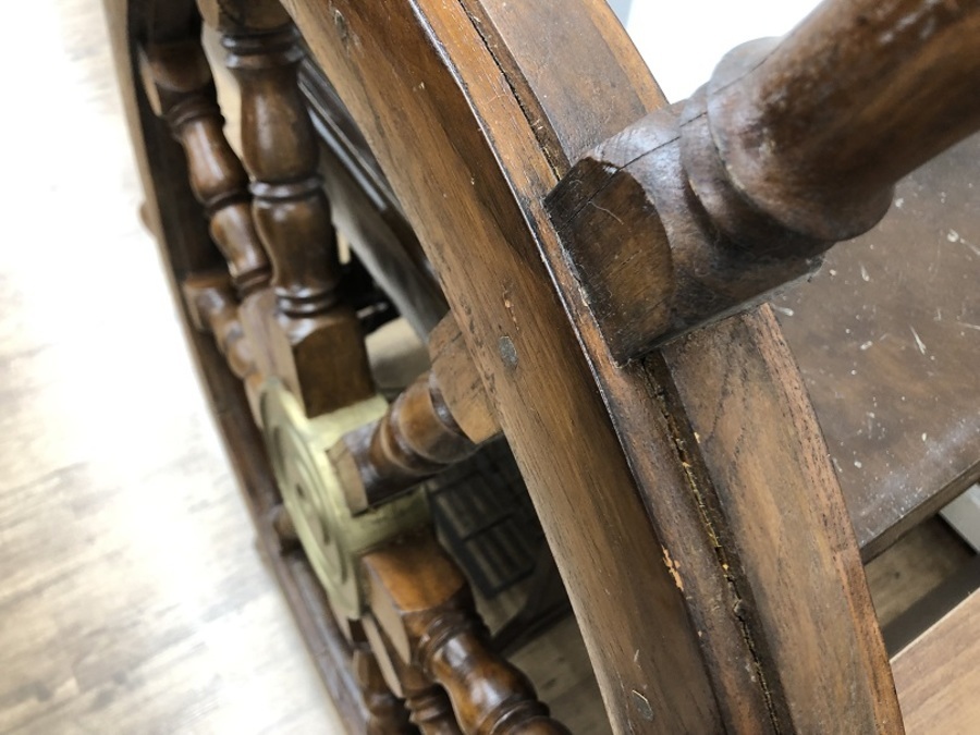 キズがあるのも味があるインテリアとしてぴったりな船舵です。