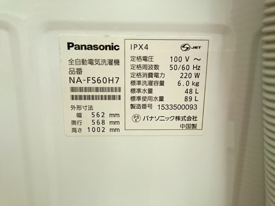 品名:パナソニック6.0kg洗濯機