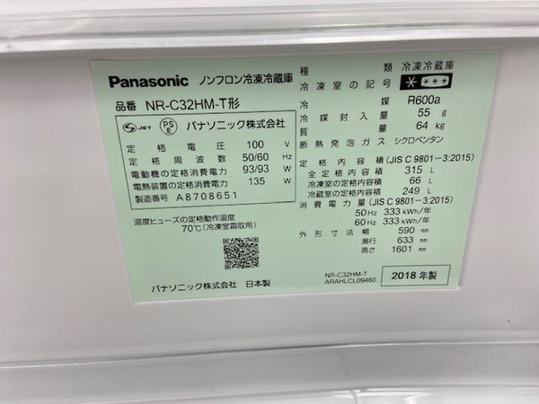 「Panasonic パナソニック NR-C32-HMT 3ドア冷蔵庫 315L 2018年製」入荷!【北越谷店】