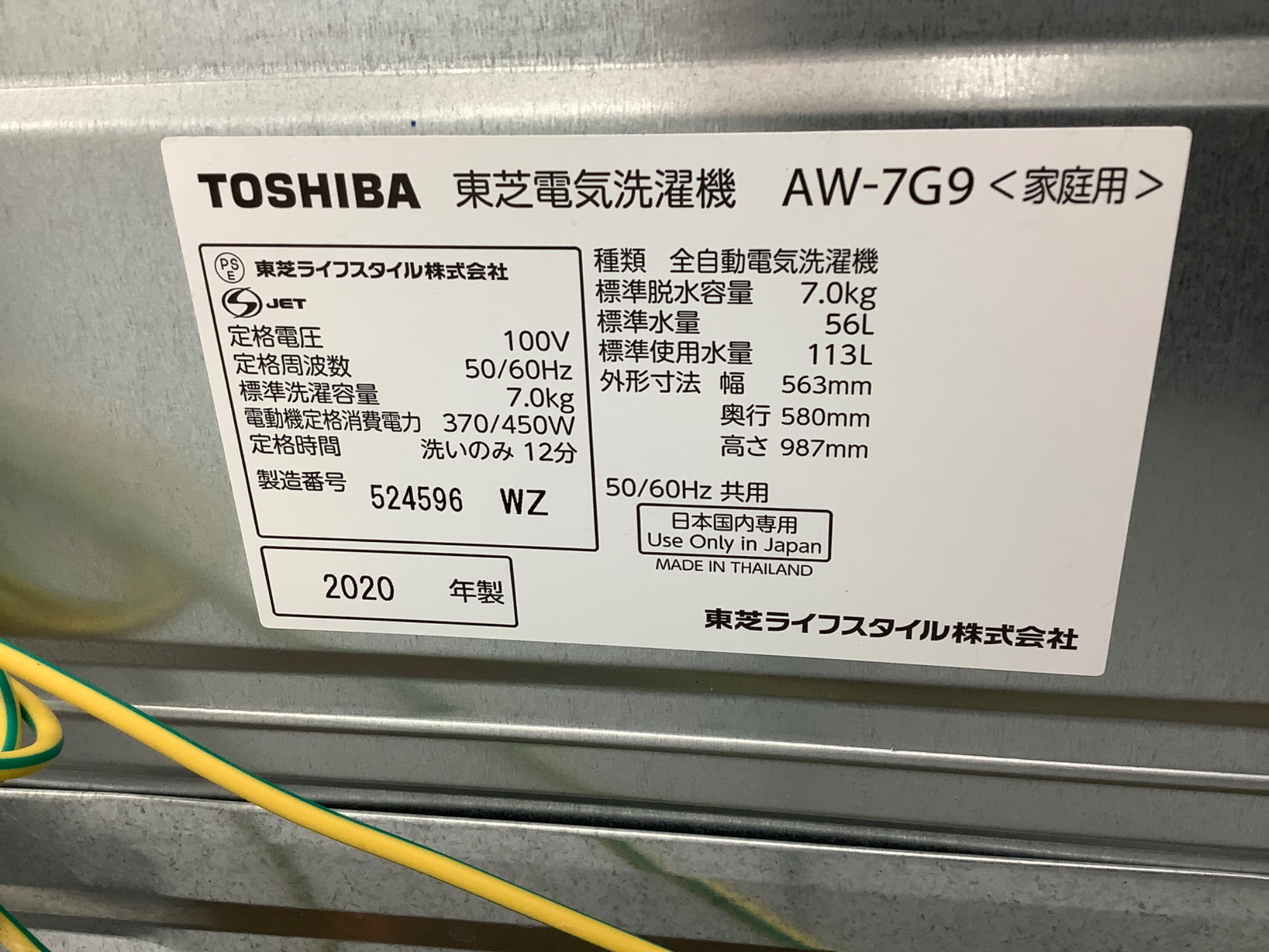・アイテム名   :全自動洗濯機