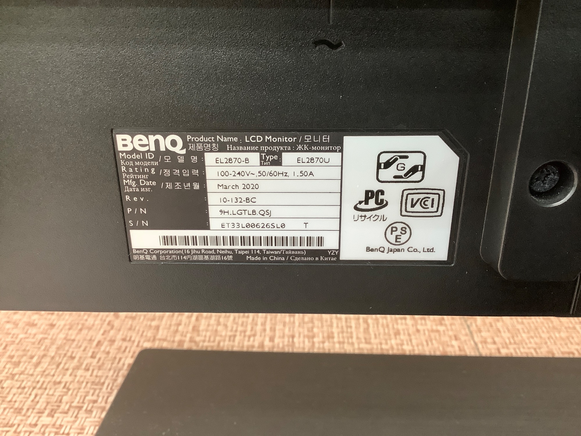 BenQ ゲーミングモニターになります!