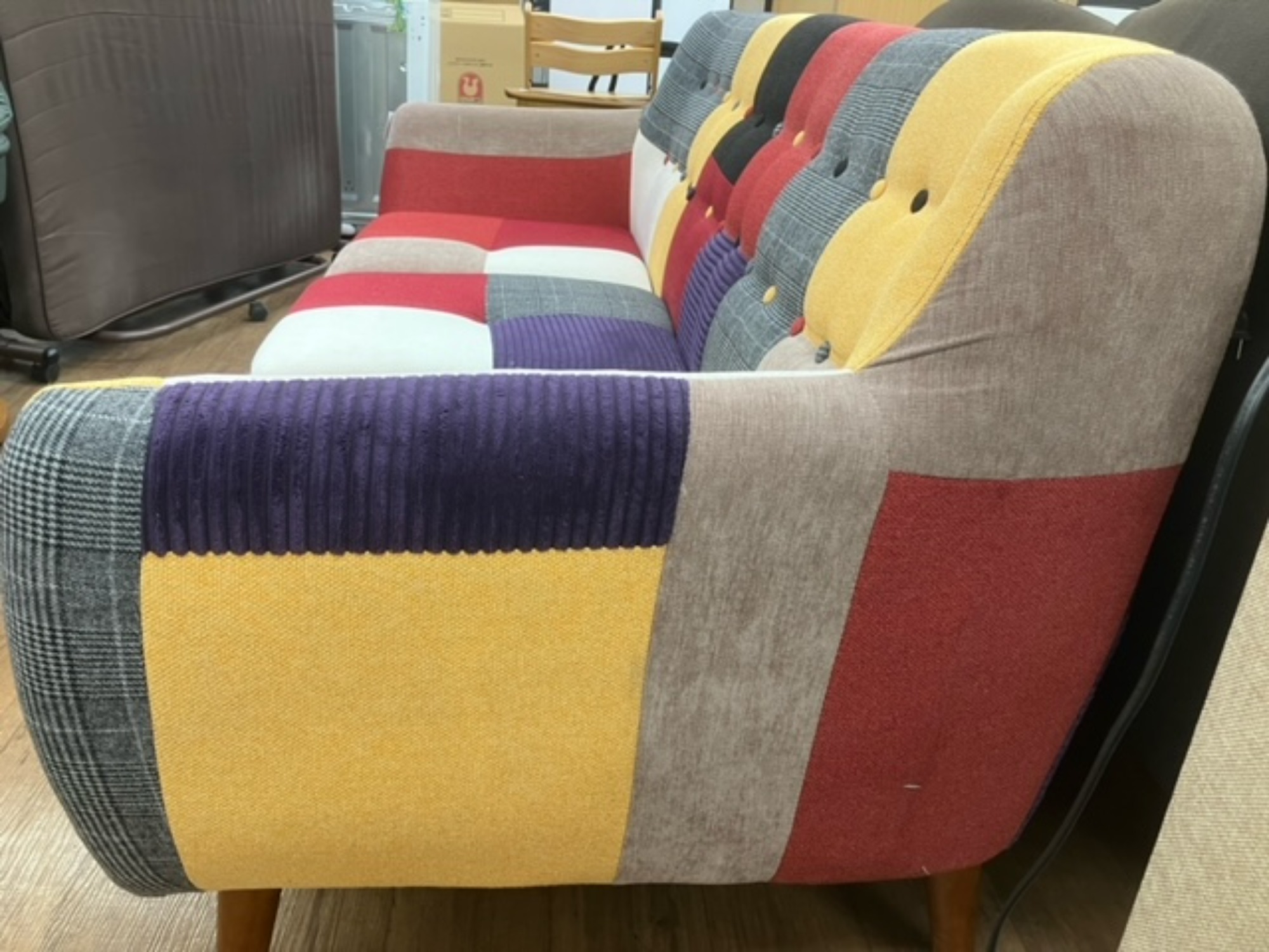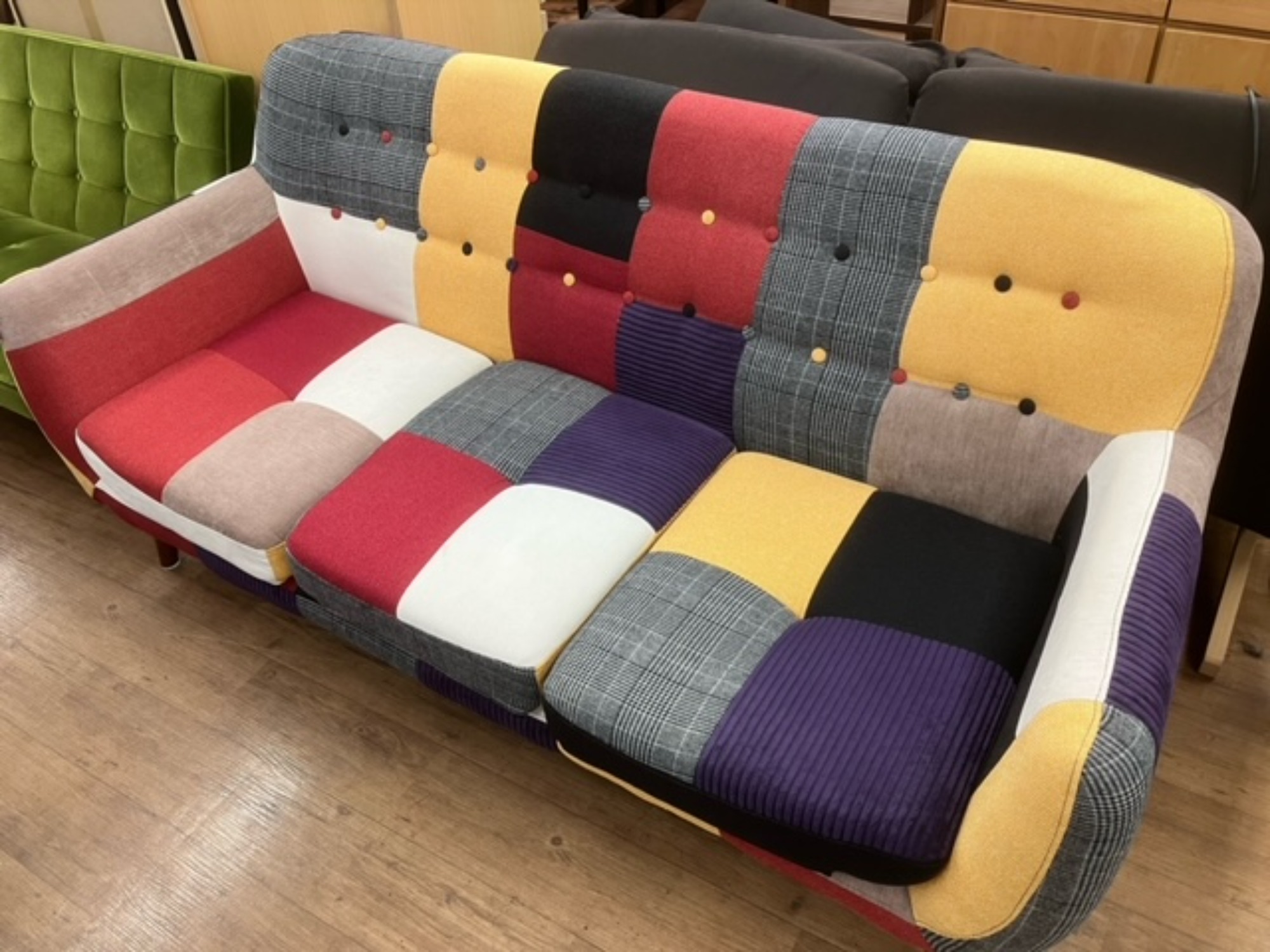 パッチワーク柄が特徴の3人掛けソファーが入荷致しました!
