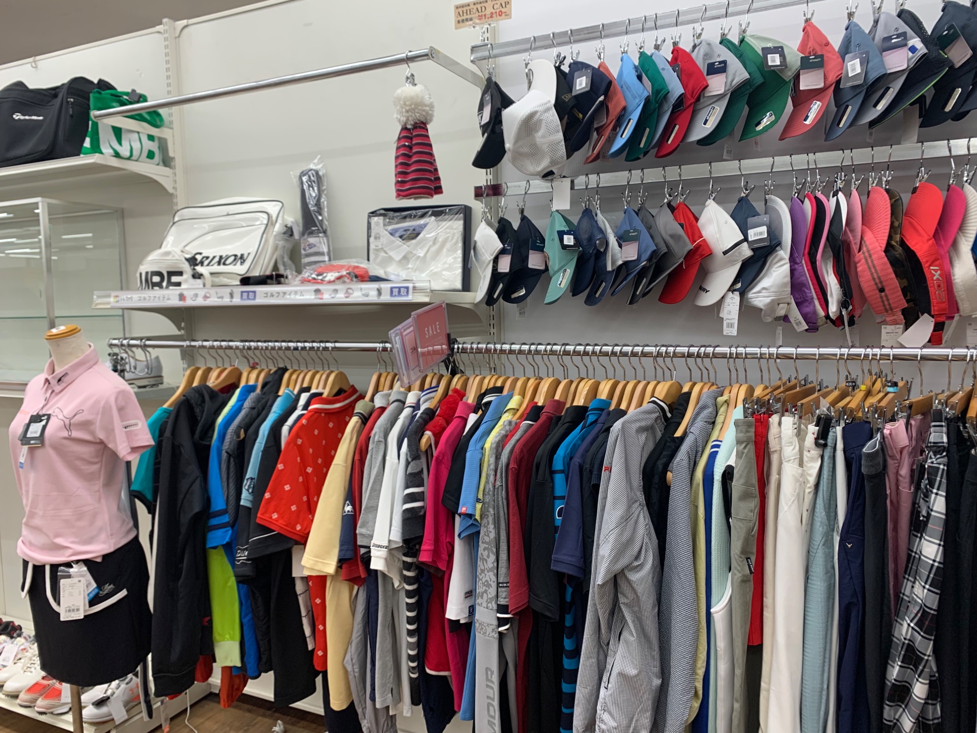 店内にはゴルフウェアなども販売しております!