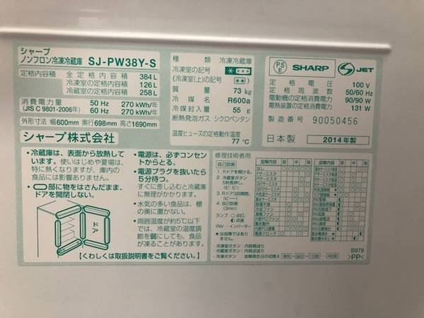 中古冷蔵庫のSHARP