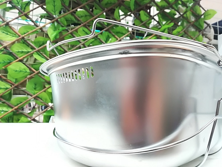 ハンドル付で食器や野菜の運搬、食器の収納としても使える、