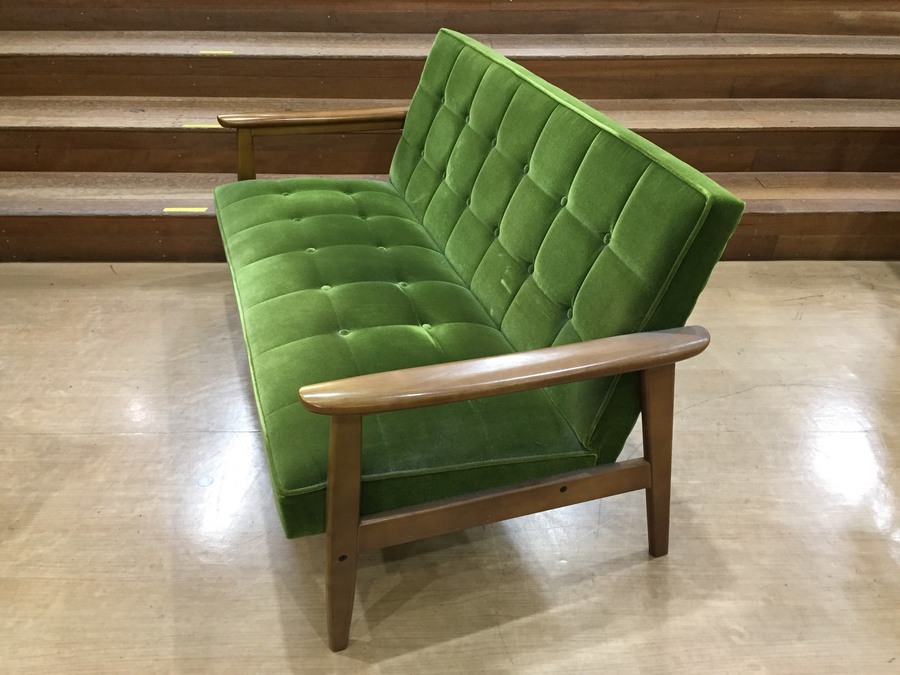 ウォールナットカラーとモケットグリーンのおしゃれな佇まいとレトロな雰囲気が秀逸な逸品です。