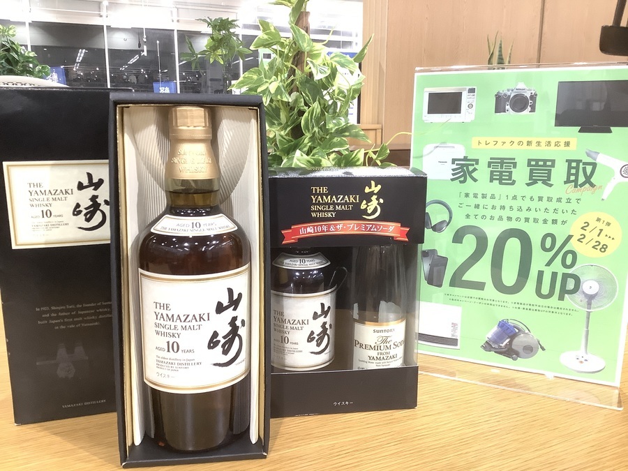 SUNTORY(サントリー)山崎10年 ホワイトラベルと山崎10年&ザ・プレミアムソーダが買取入荷致しました!