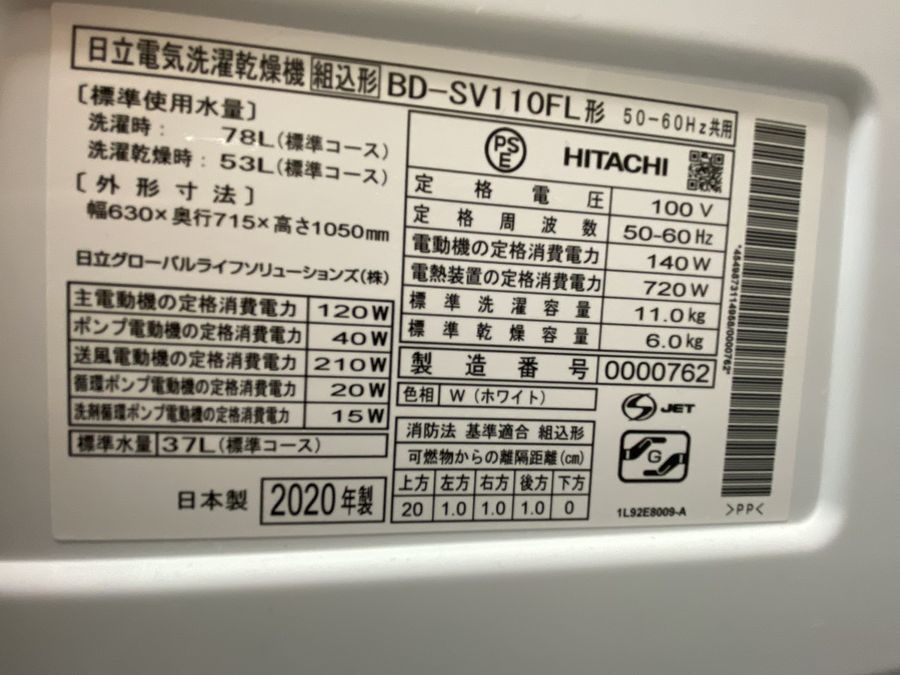 大容量11kg!HITACHI(ヒタチ) ドラム式洗濯乾燥機 (BD-SV110FL) が買取入荷いたしました!