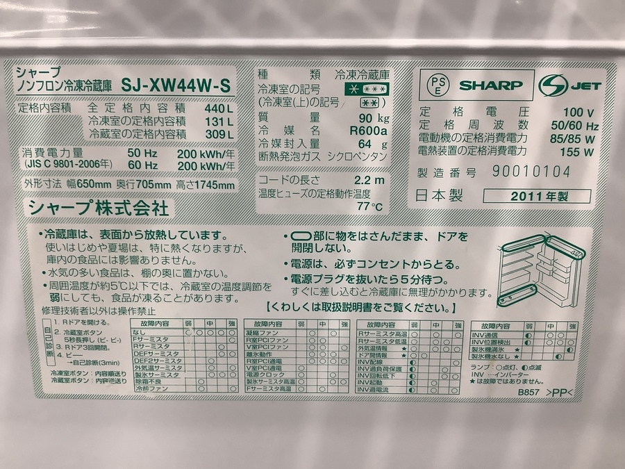 2011年製SHARP(シャープ)の5ドア冷蔵庫が入荷いたしました!